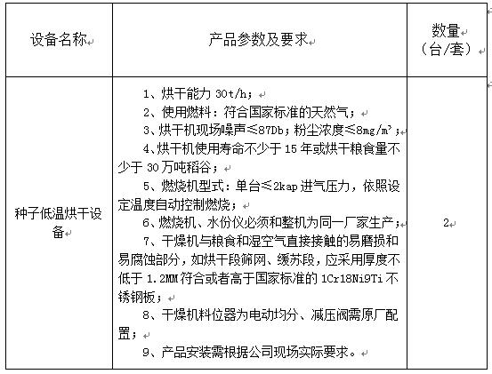 江苏金土地种业有限公司计划购买种子低温烘干设备一批,现进行公开招标,欢迎符合相关条件的供应商参加投标。